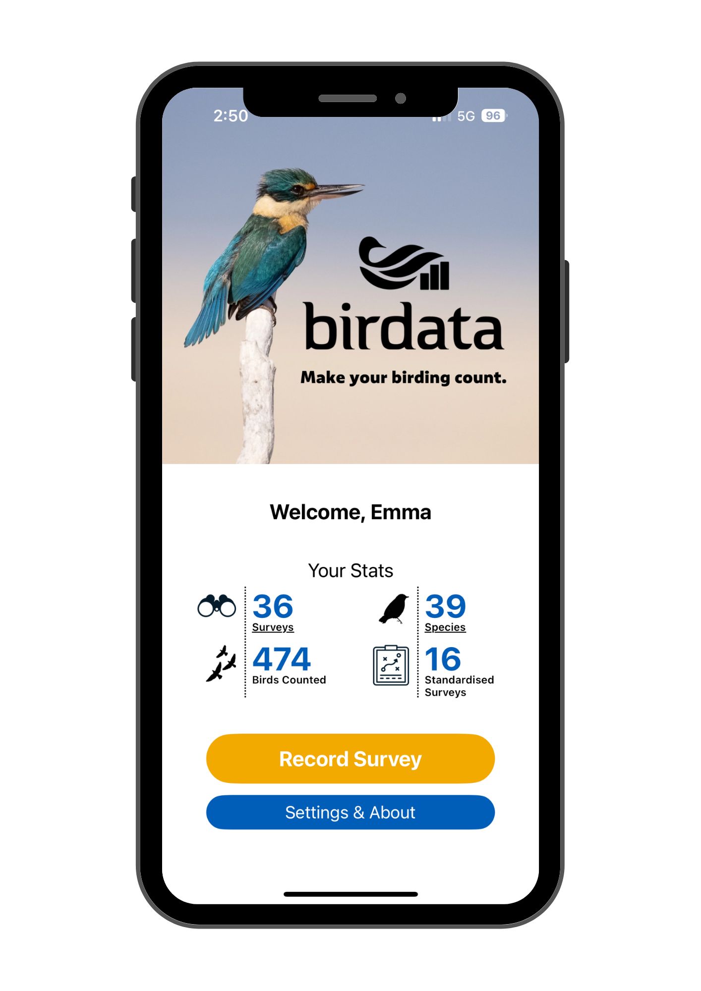 Set yourself up to record Birdata surveys by downloading the Birdata app from your Apple or Android device. These can be found either in Google Play or App Store. The Birdata app is free and has no in-house purchases.
